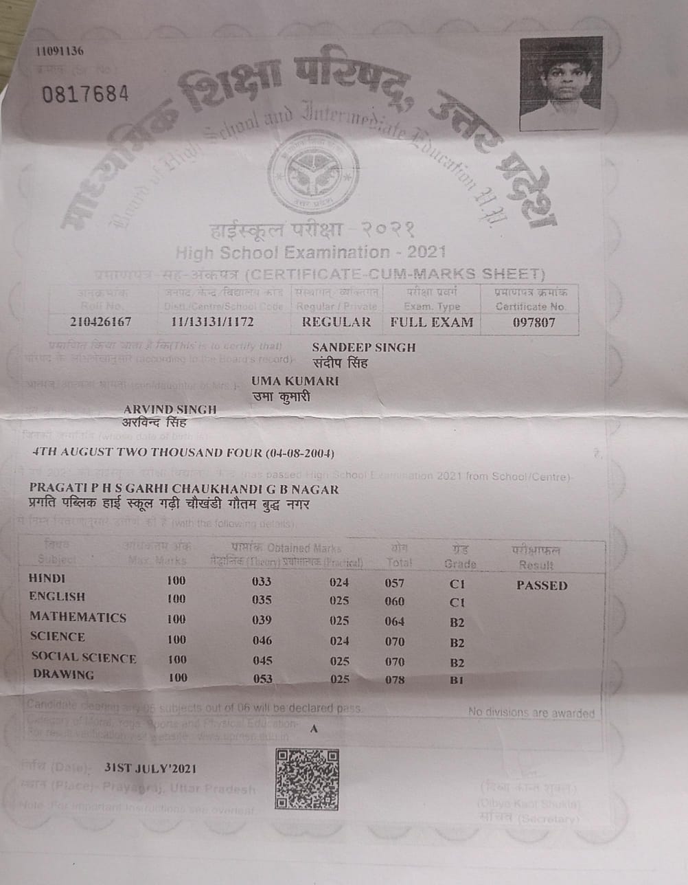 | Exam | Full Marks | Pass Marks | Marks Obtained |