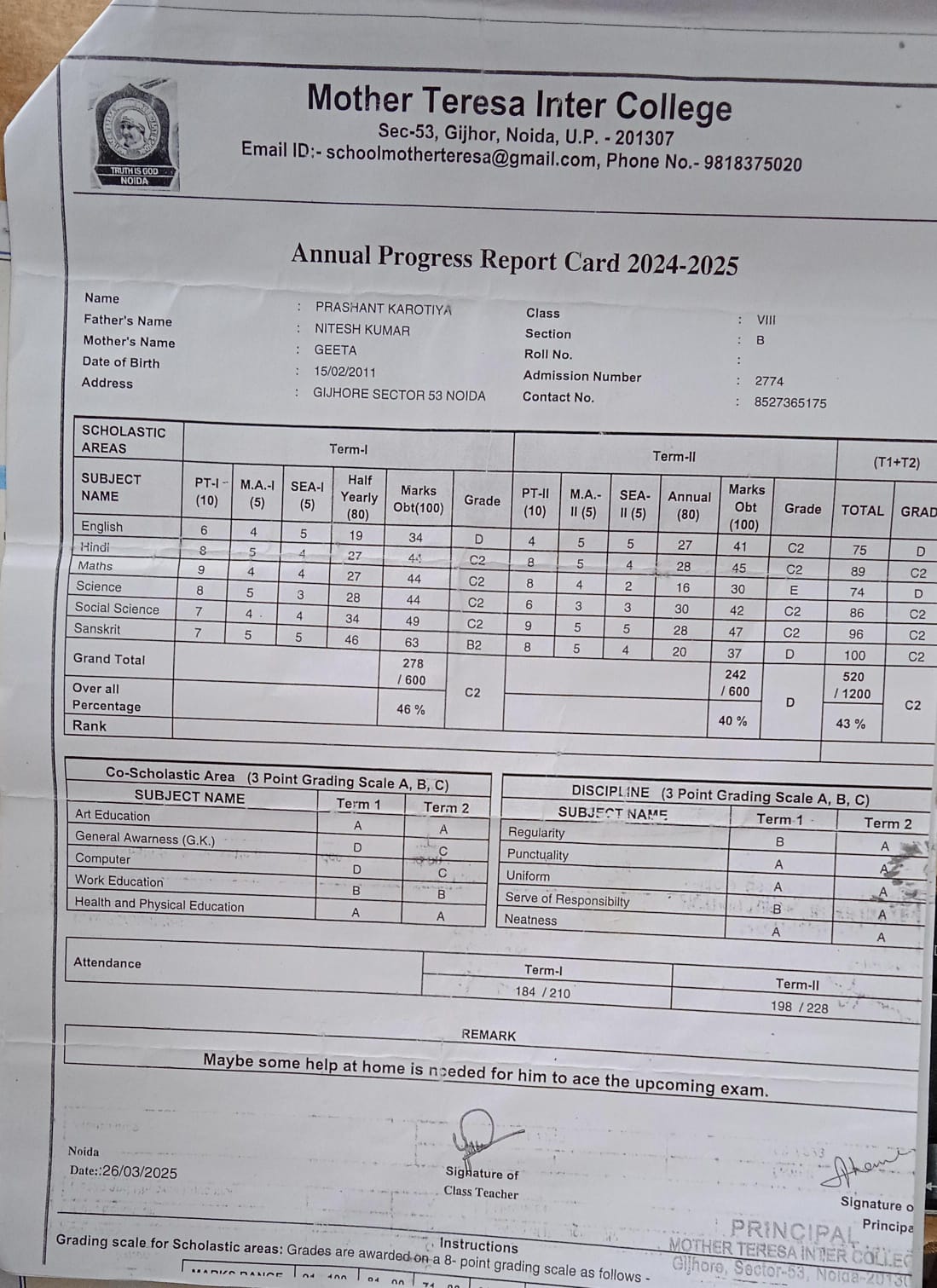 | Exam | Full Marks | Pass Marks | Marks Obtained |