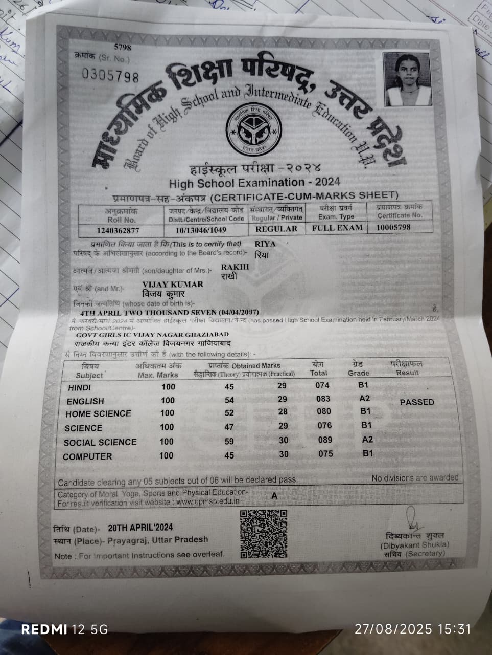 | Exam | Full Marks | Pass Marks | Marks Obtained |