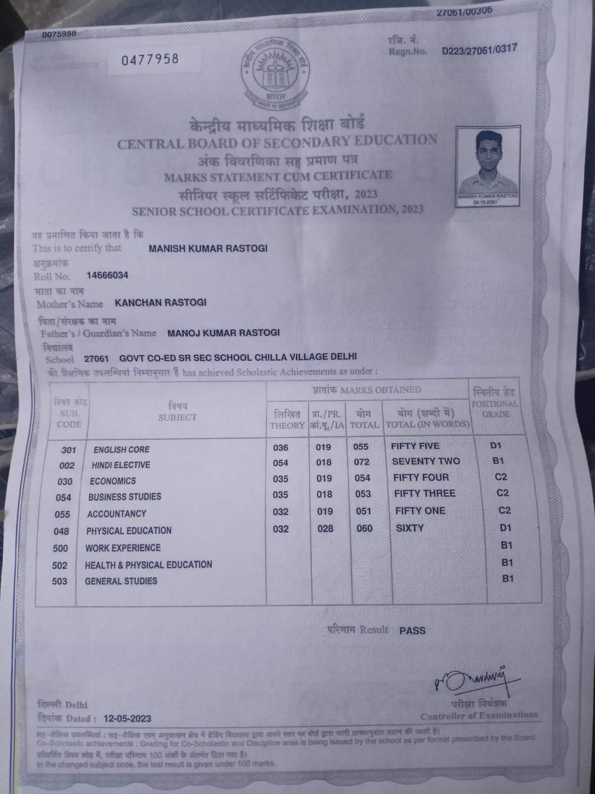 | Exam | Full Marks | Pass Marks | Marks Obtained |