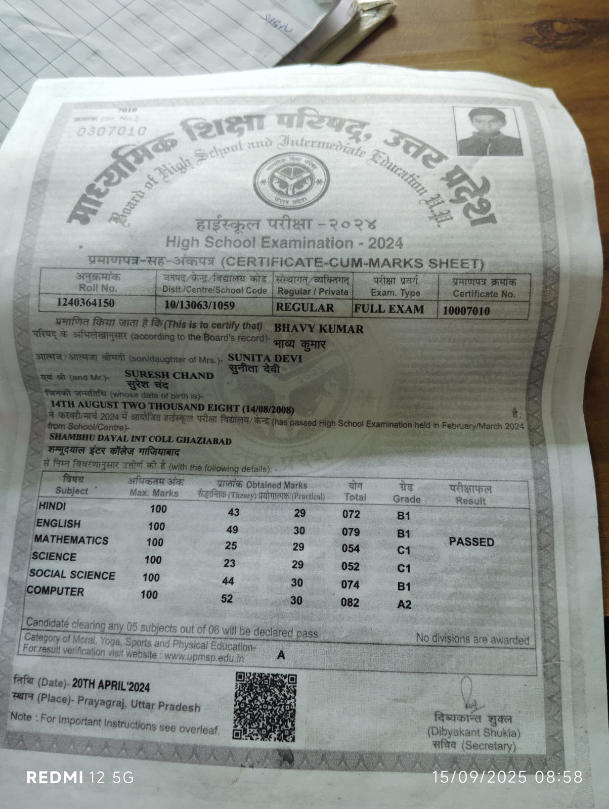 | Exam | Full Marks | Pass Marks | Marks Obtained |