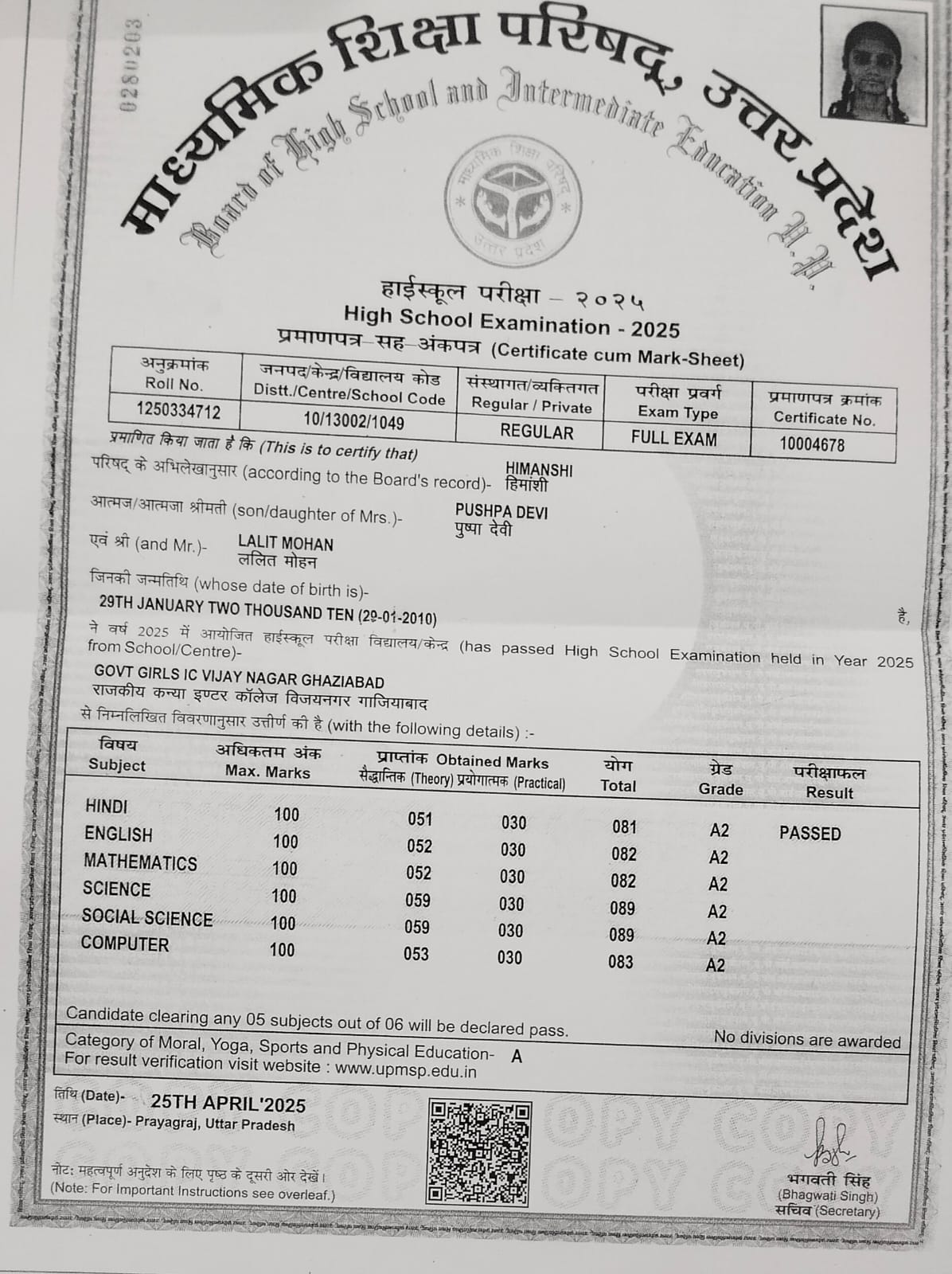 | Exam | Full Marks | Pass Marks | Marks Obtained |