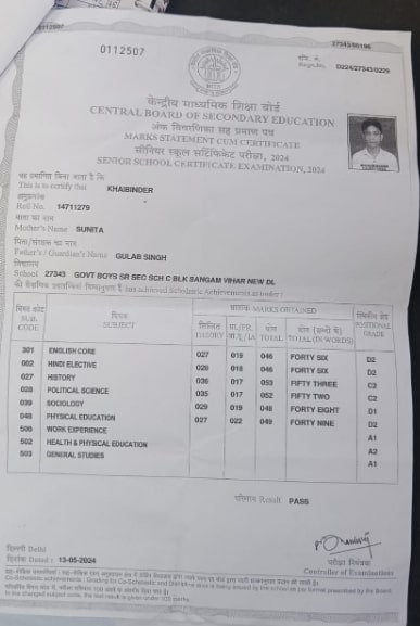 | Exam | Full Marks | Pass Marks | Marks Obtained |