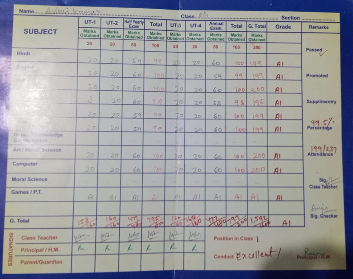 | Exam | Full Marks | Pass Marks | Marks Obtained |