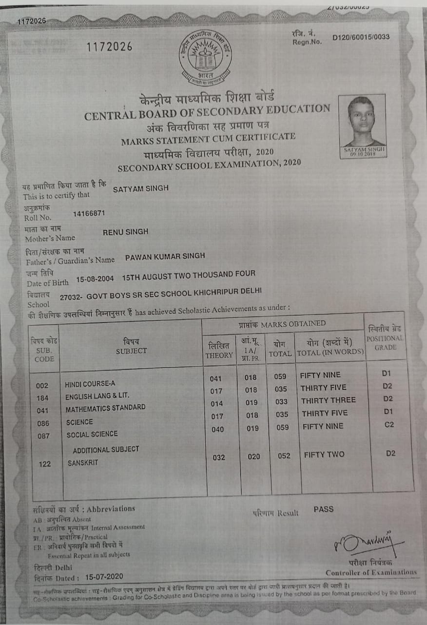 | Exam | Full Marks | Pass Marks | Marks Obtained |