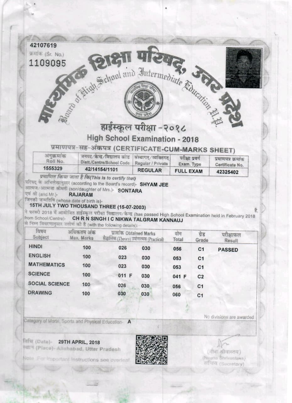 | Exam | Full Marks | Pass Marks | Marks Obtained |