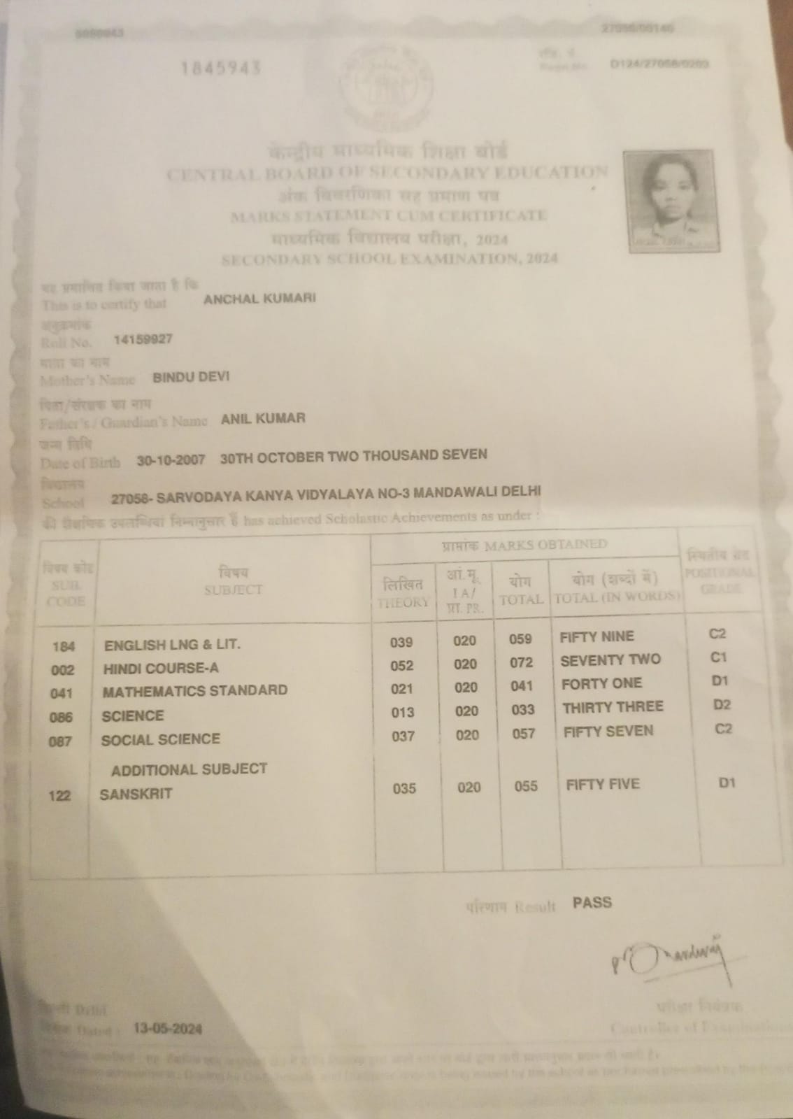 | Exam | Full Marks | Pass Marks | Marks Obtained |