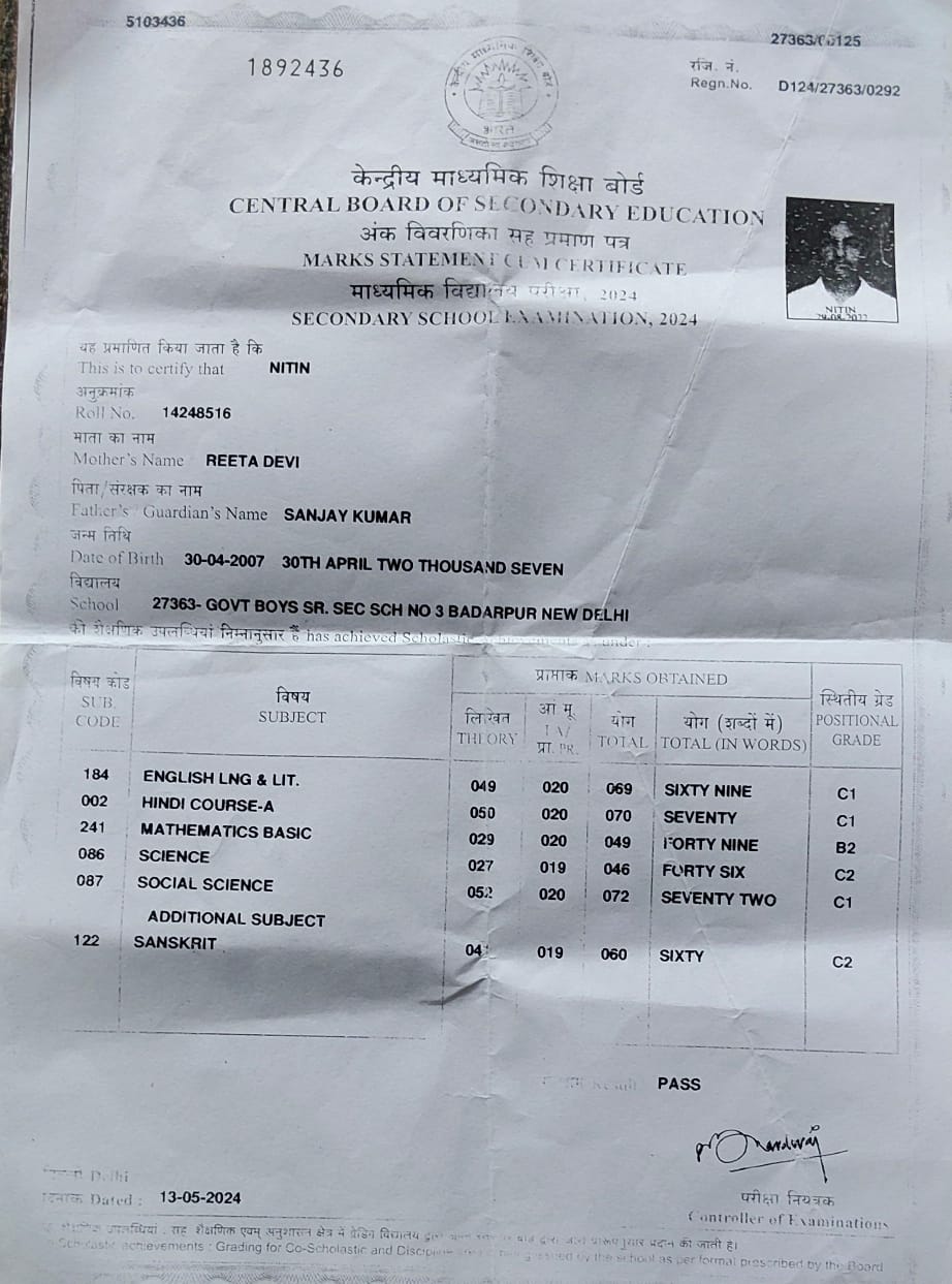 | Exam | Full Marks | Pass Marks | Marks Obtained |