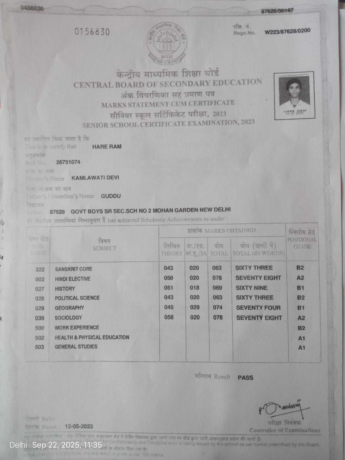 | Exam | Full Marks | Pass Marks | Marks Obtained |