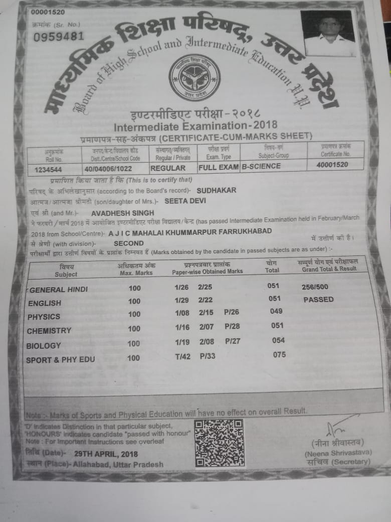 | Exam | Full Marks | Pass Marks | Marks Obtained |