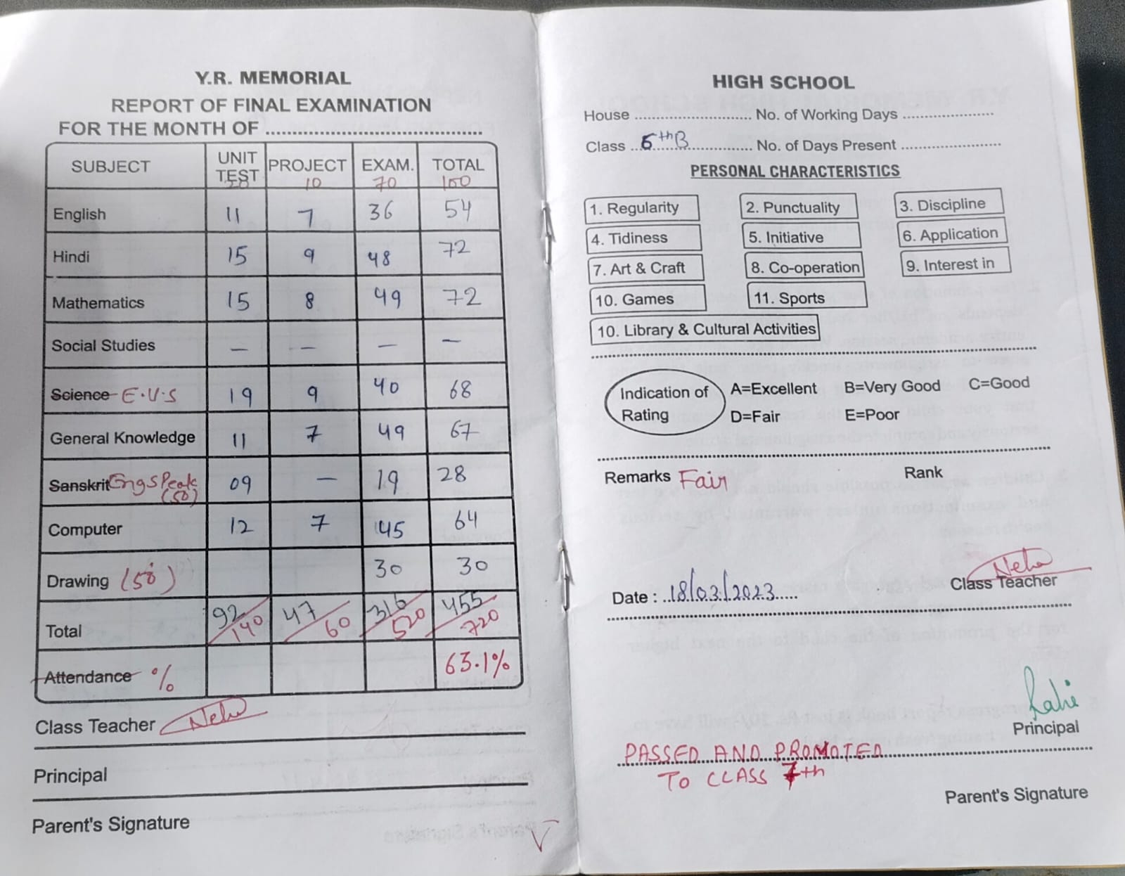 | Exam | Full Marks | Pass Marks | Marks Obtained |