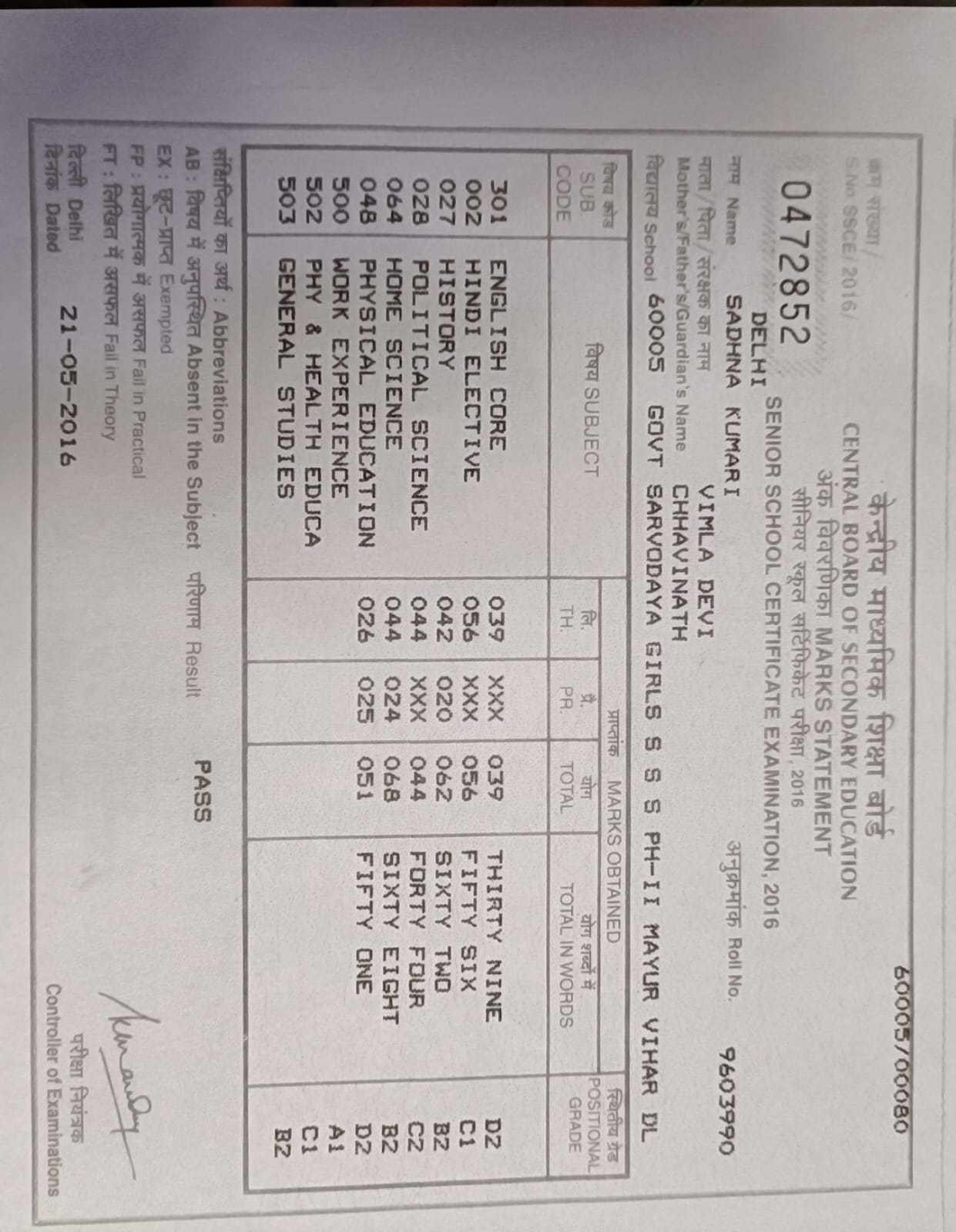 | Exam | Full Marks | Pass Marks | Marks Obtained |