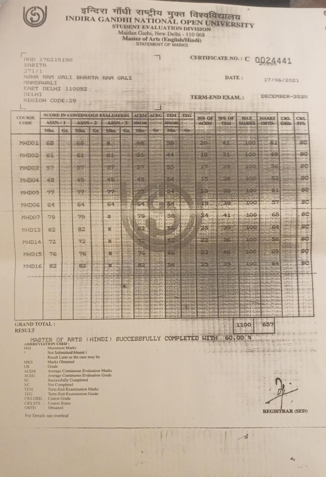 | Exam | Full Marks | Pass Marks | Marks Obtained |