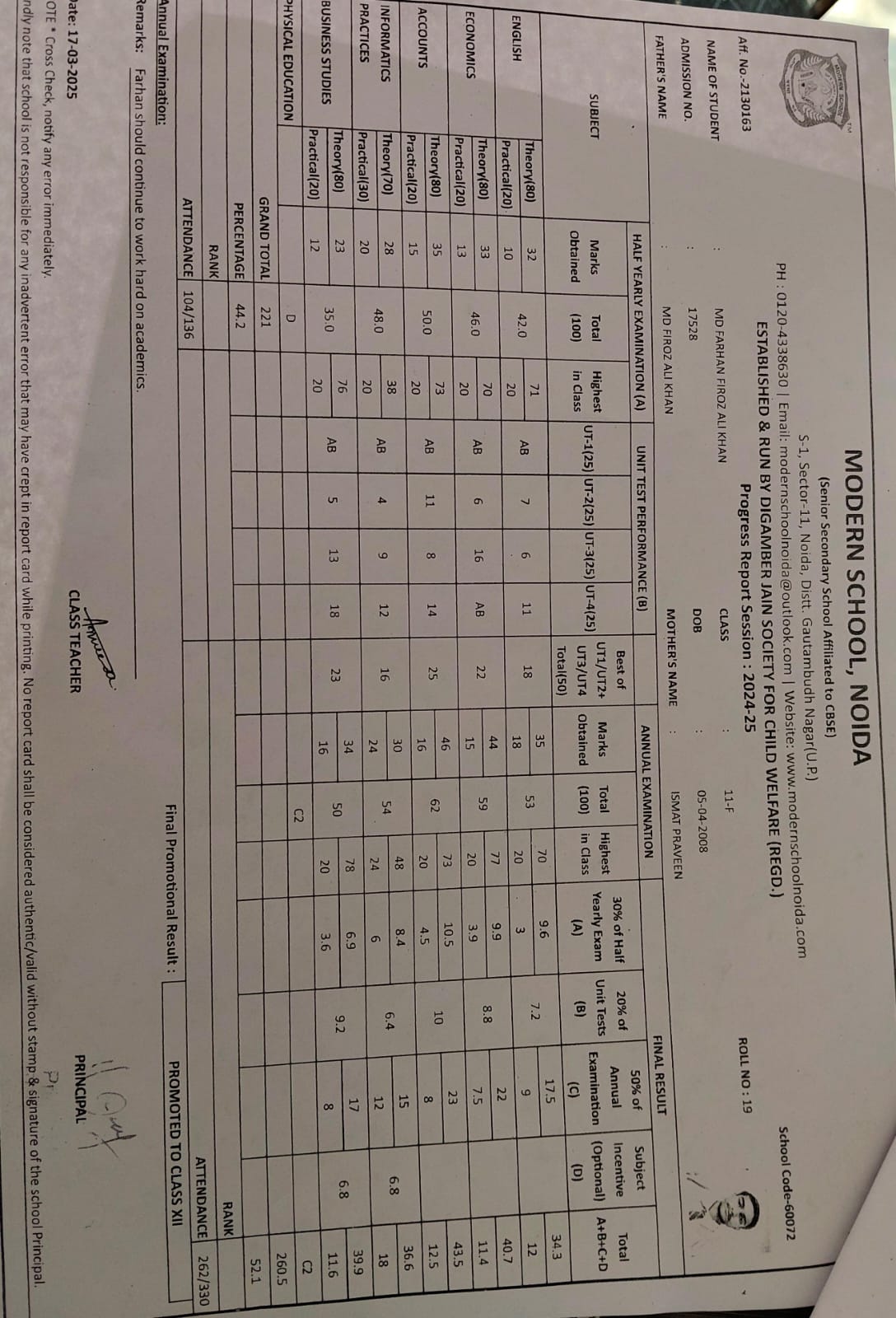 | Exam | Full Marks | Pass Marks | Marks Obtained |