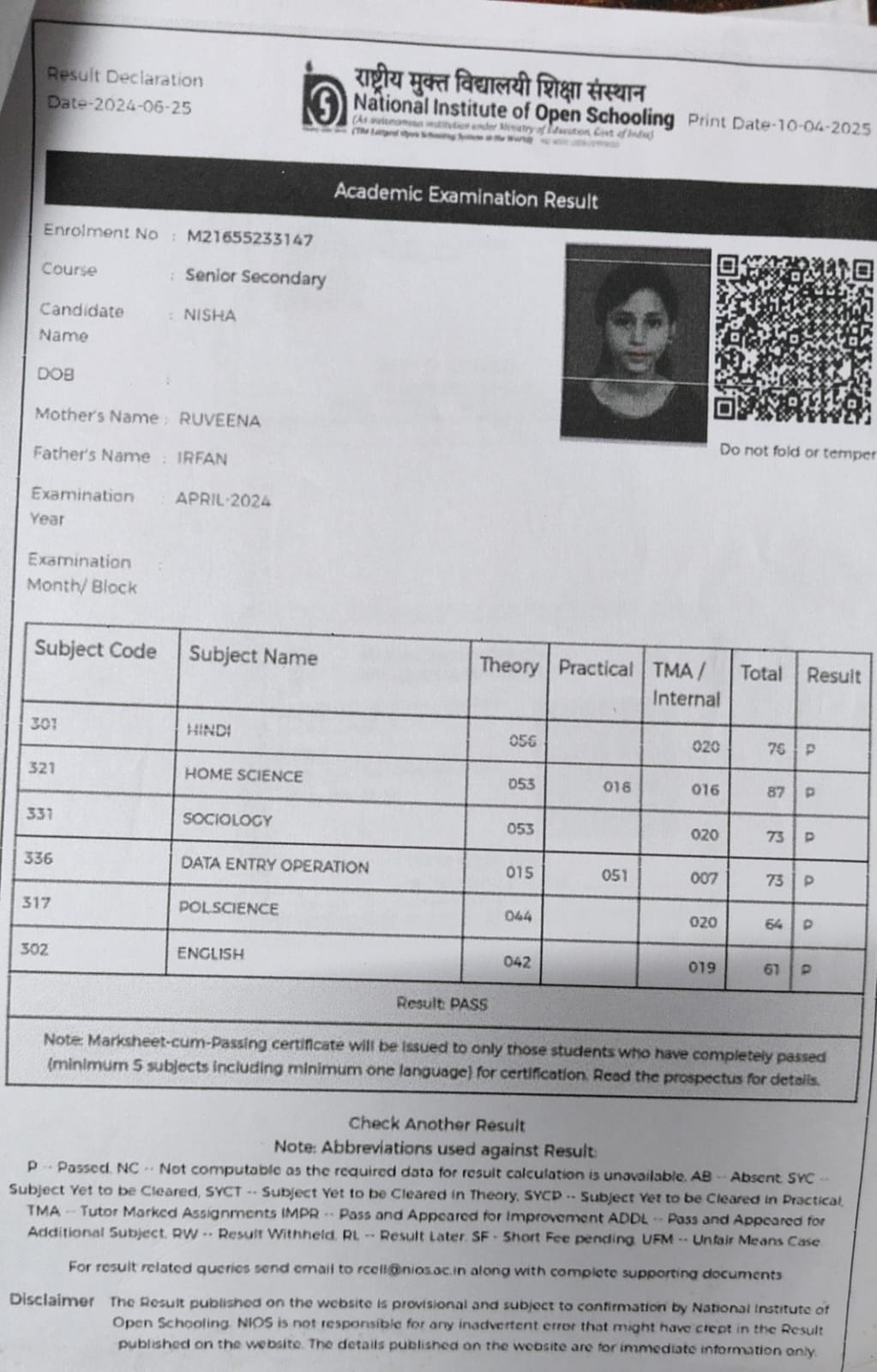 | Exam | Full Marks | Pass Marks | Marks Obtained |