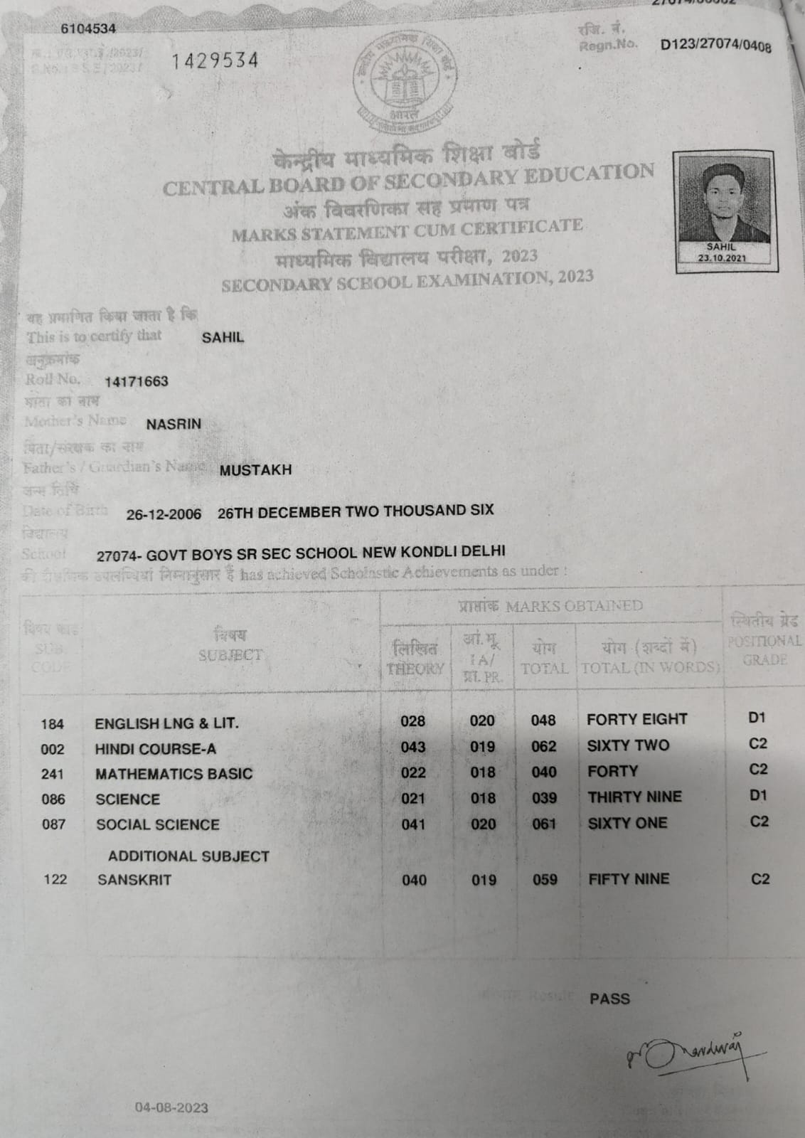 | Exam | Full Marks | Pass Marks | Marks Obtained |