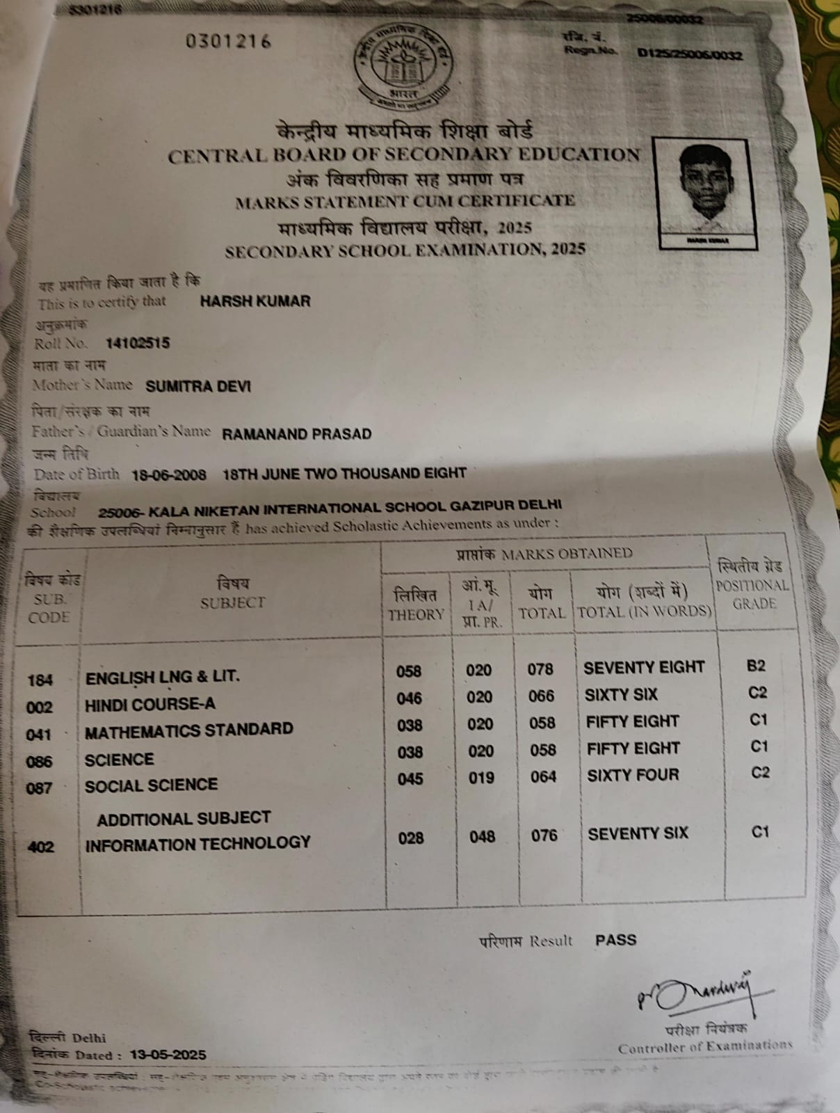 | Exam | Full Marks | Pass Marks | Marks Obtained |