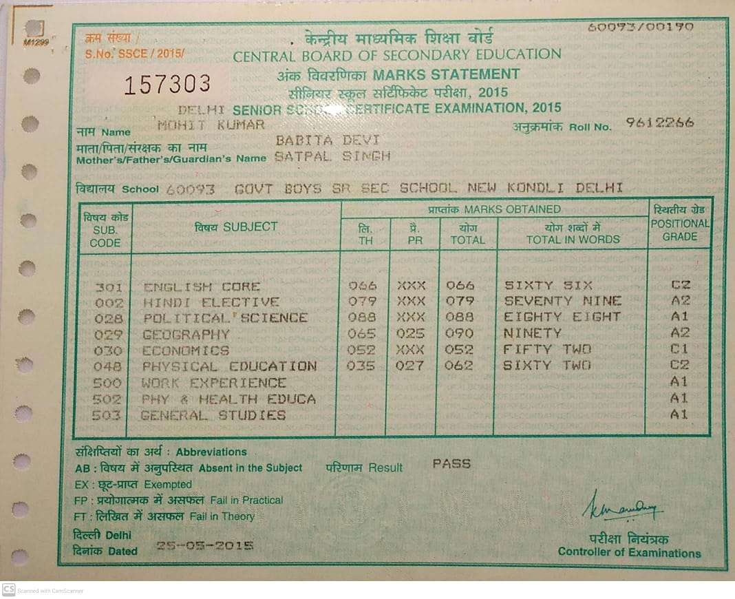 | Exam | Full Marks | Pass Marks | Marks Obtained |