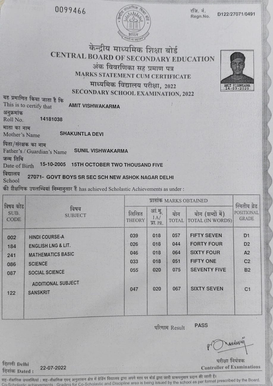 | Exam | Full Marks | Pass Marks | Marks Obtained |