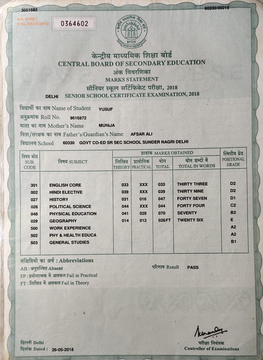 | Exam | Full Marks | Pass Marks | Marks Obtained |