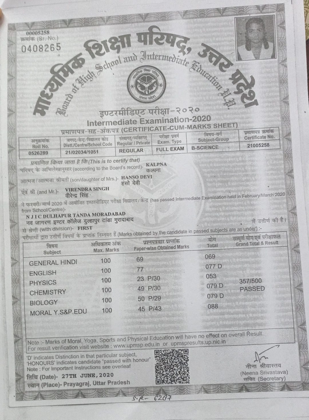 | Exam | Full Marks | Pass Marks | Marks Obtained |
