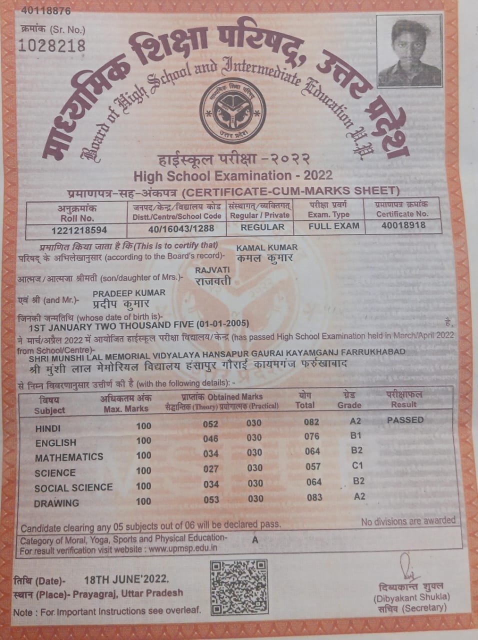 | Exam | Full Marks | Pass Marks | Marks Obtained |