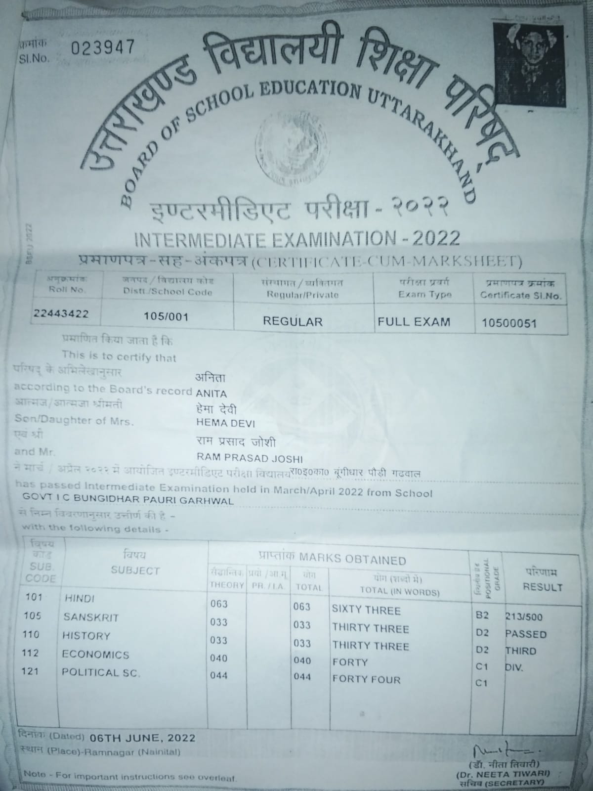 | Exam | Full Marks | Pass Marks | Marks Obtained |