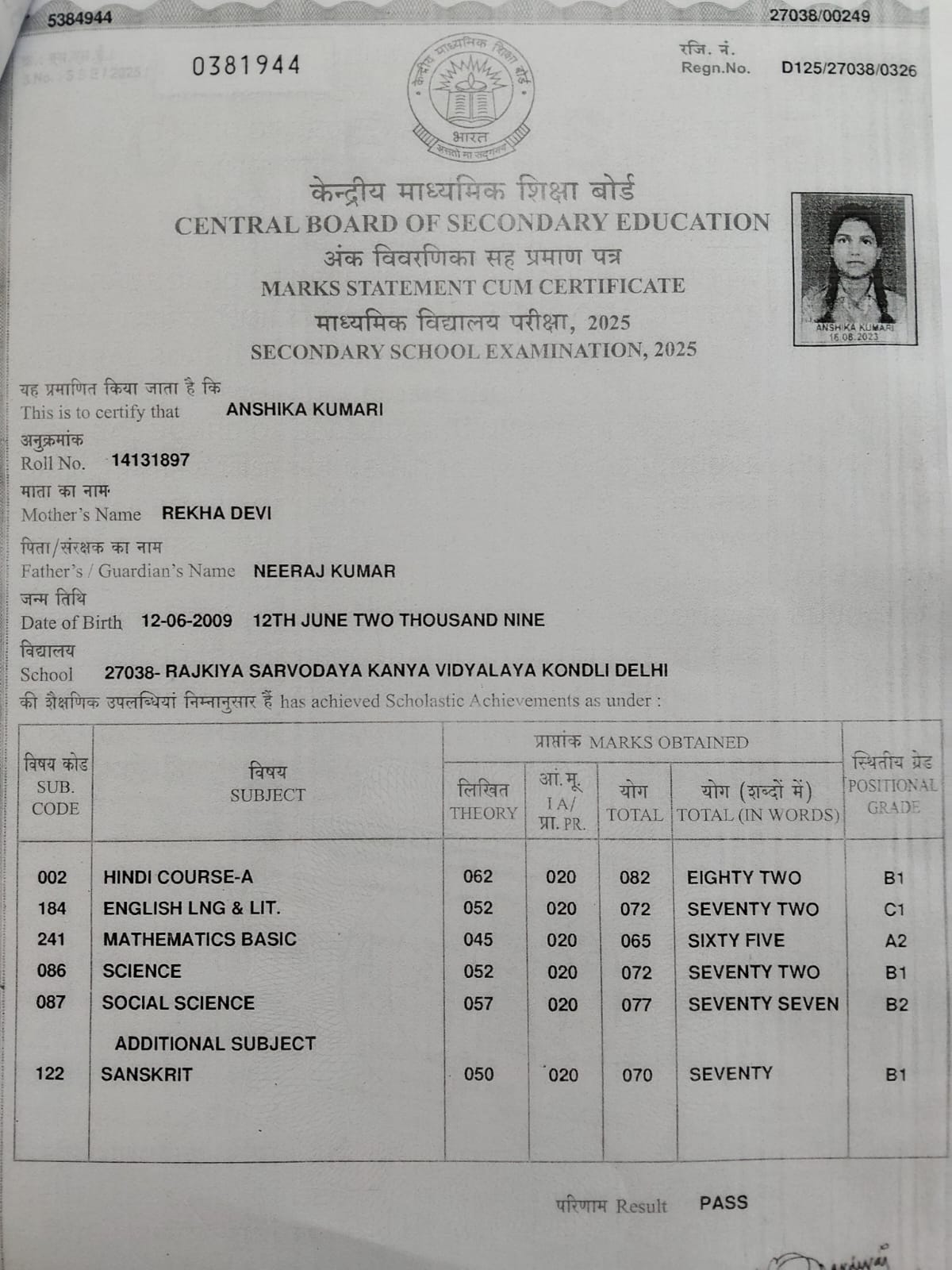| Exam | Full Marks | Pass Marks | Marks Obtained |