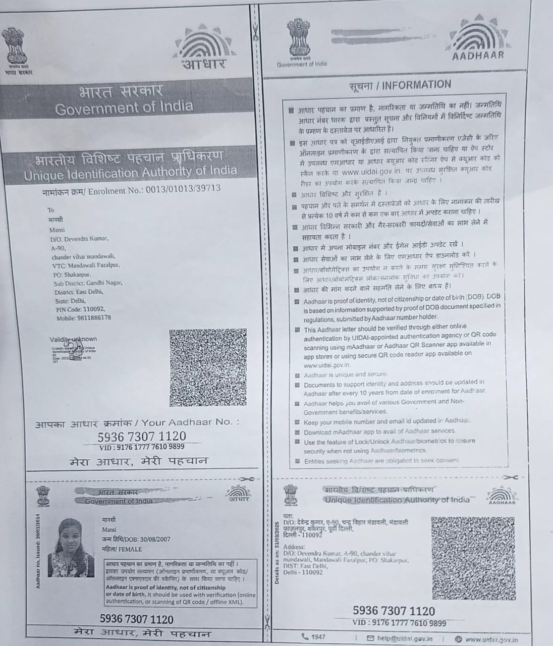 | : | Chander Vihar, Mandawali Delhi-92, East Delhi | |