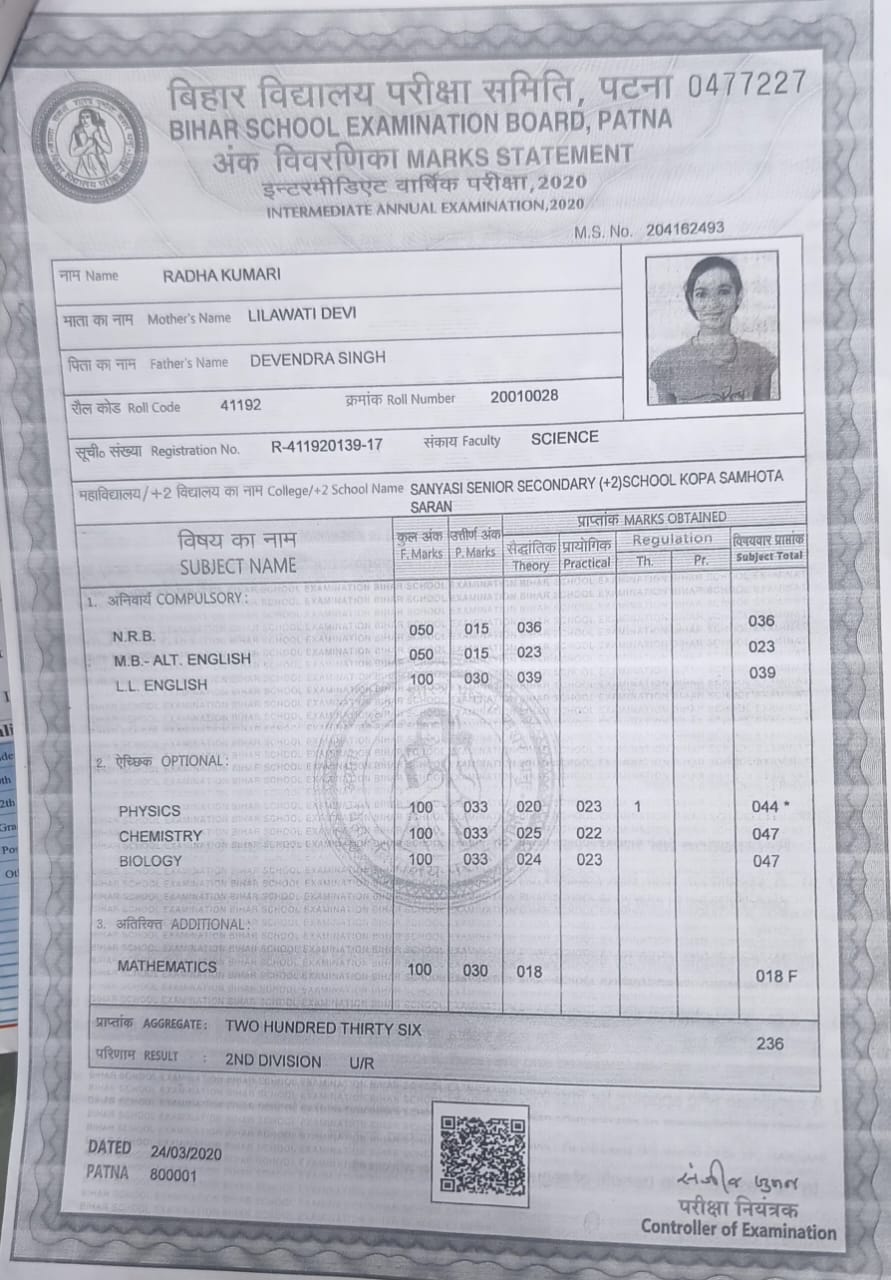 | Exam | Full Marks | Pass Marks | Marks Obtained |