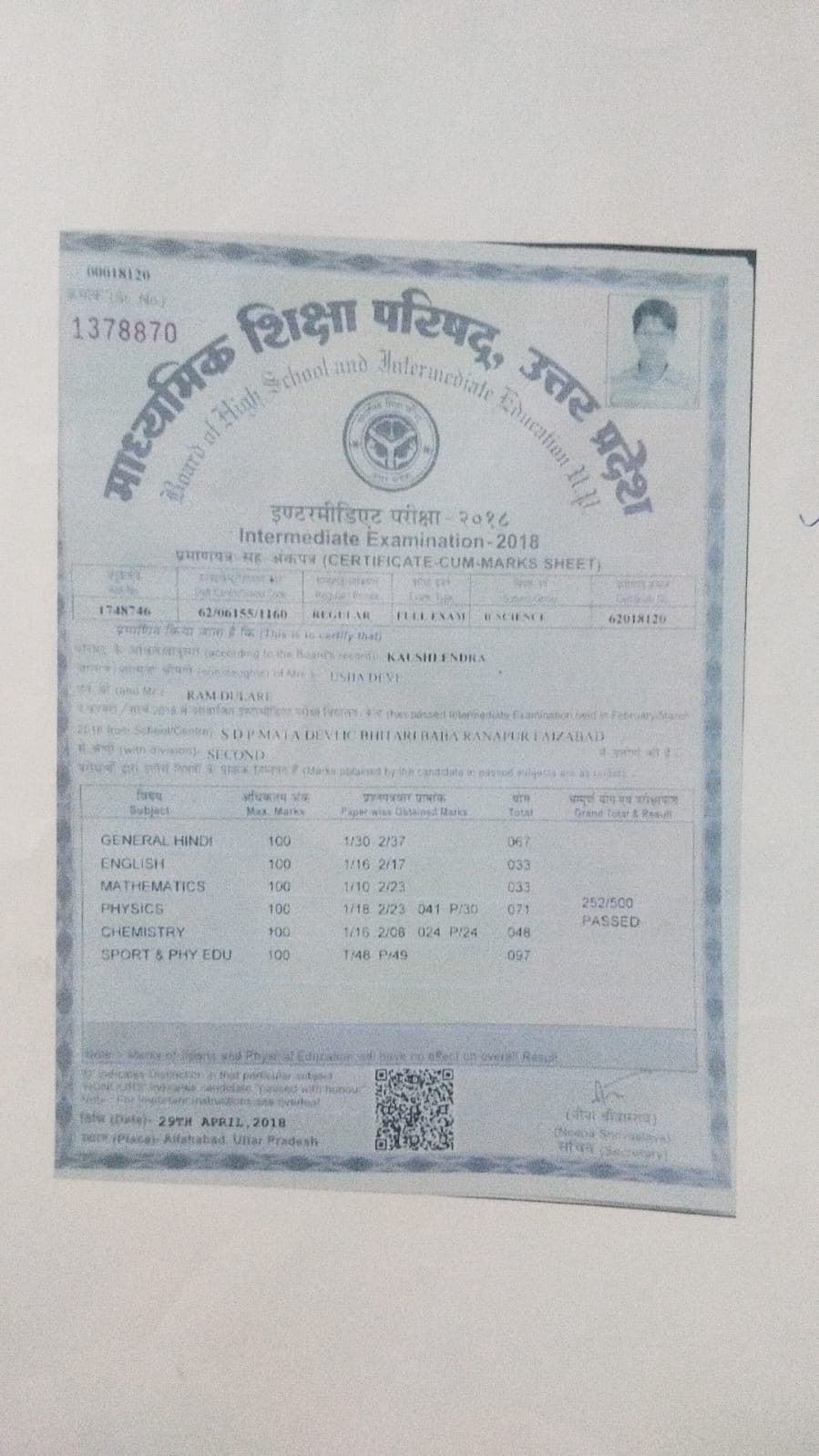 | Exam | Full Marks | Pass Marks | Marks Obtained |