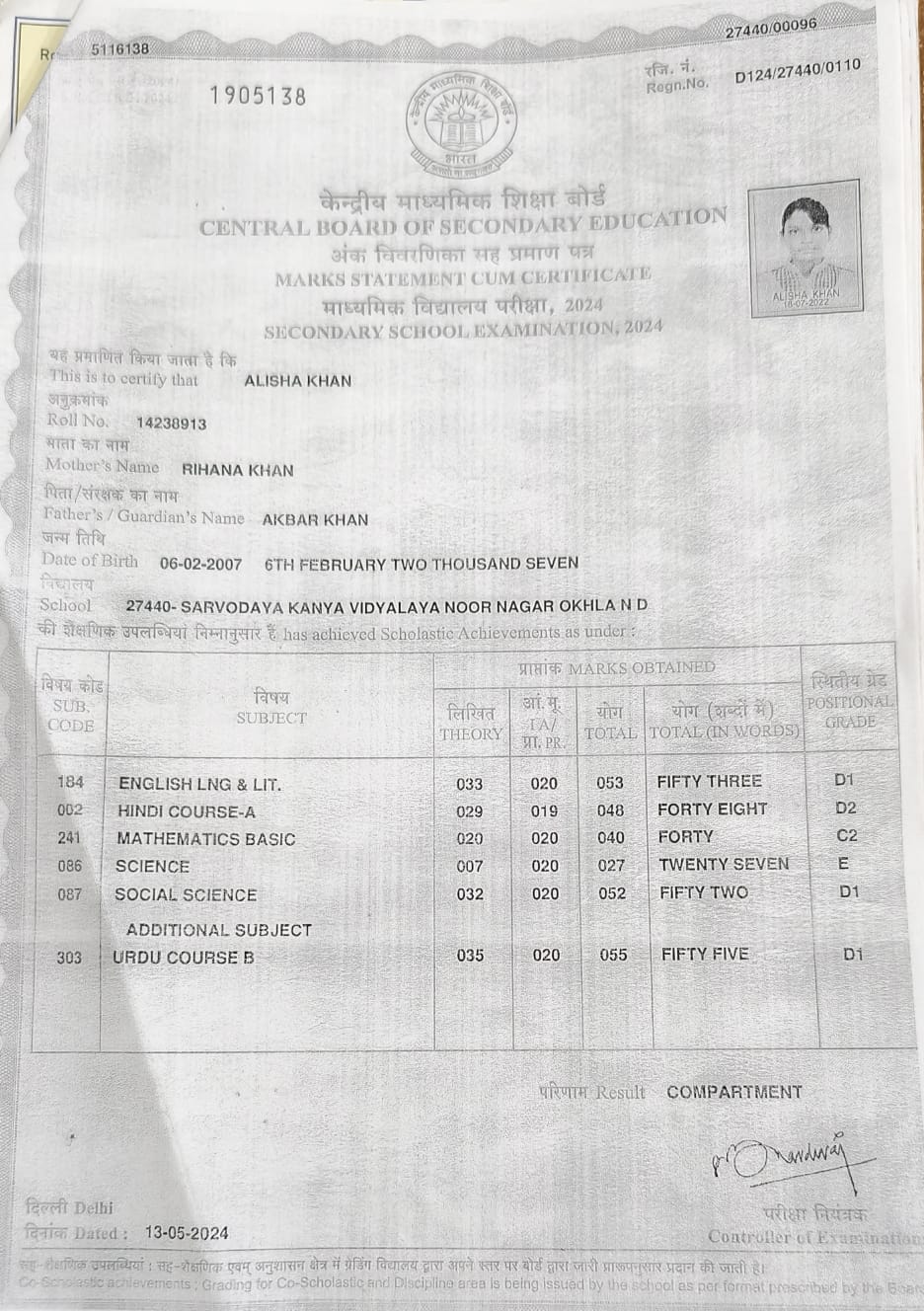 | Exam | Full Marks | Pass Marks | Marks Obtained |