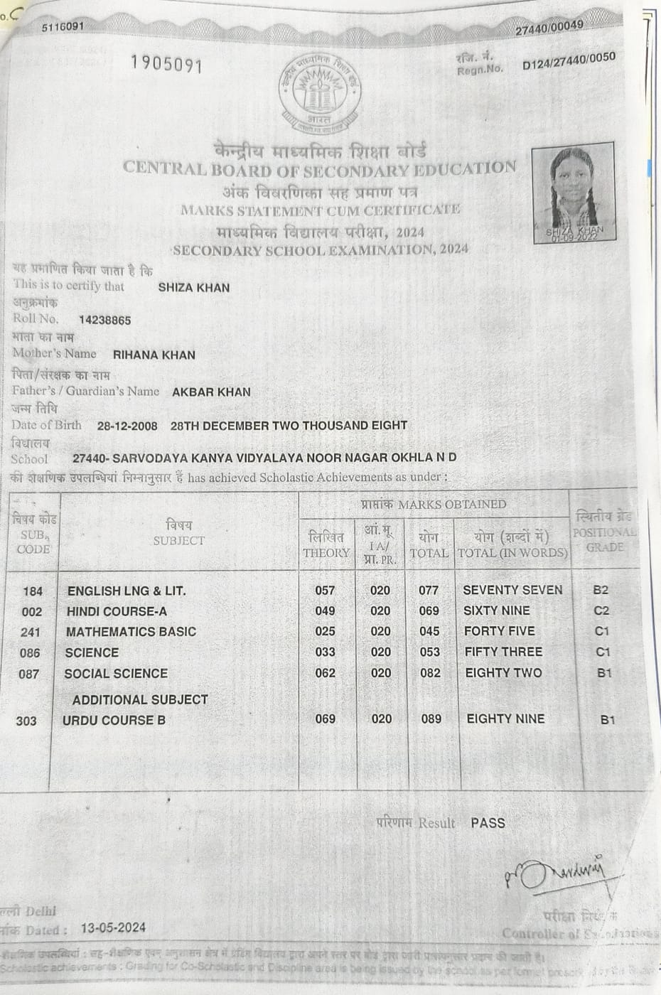 | Exam | Full Marks | Pass Marks | Marks Obtained |