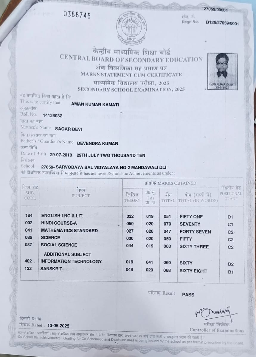 | Exam | Full Marks | Pass Marks | Marks Obtained |