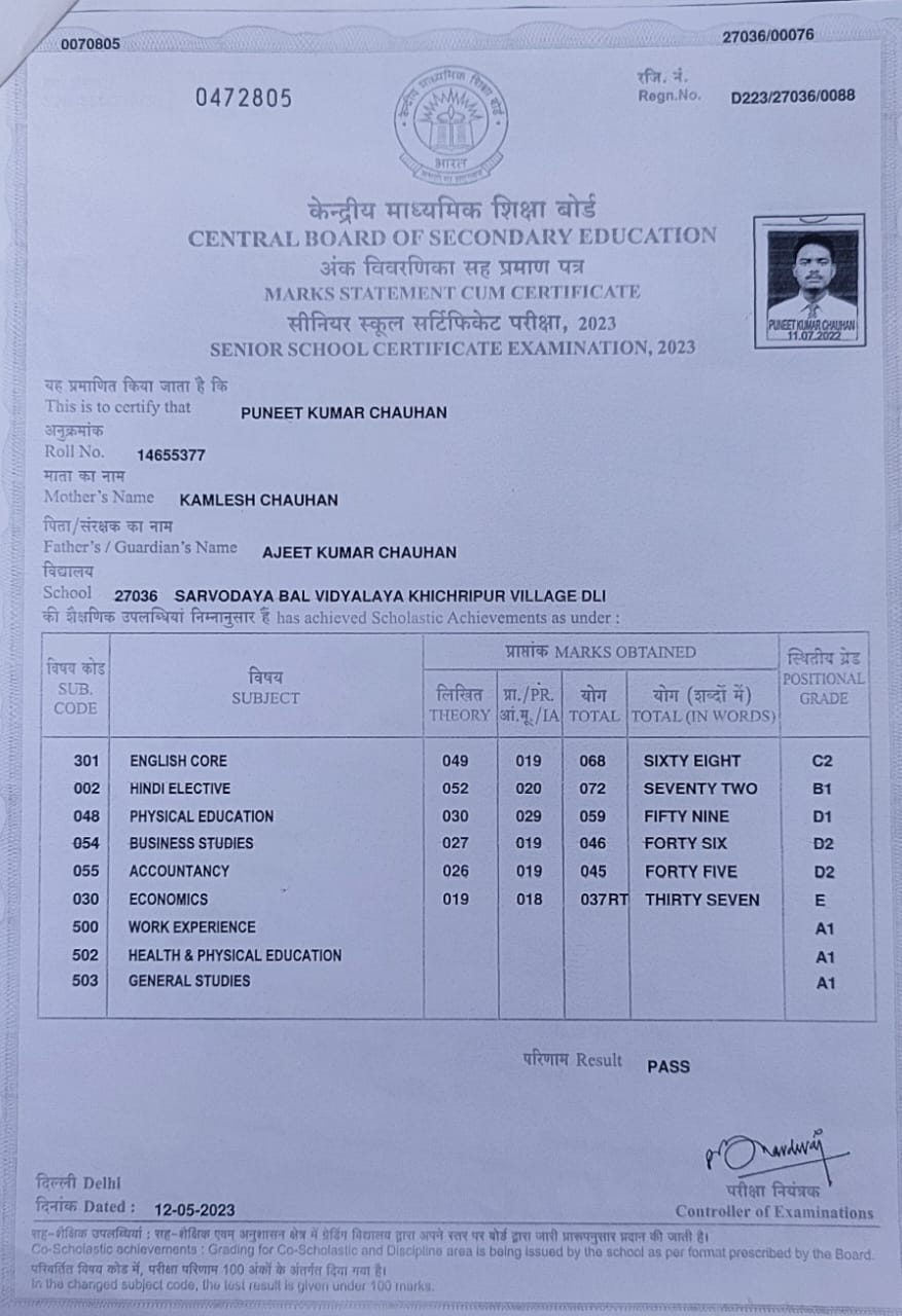 | Exam | Full Marks | Pass Marks | Marks Obtained |