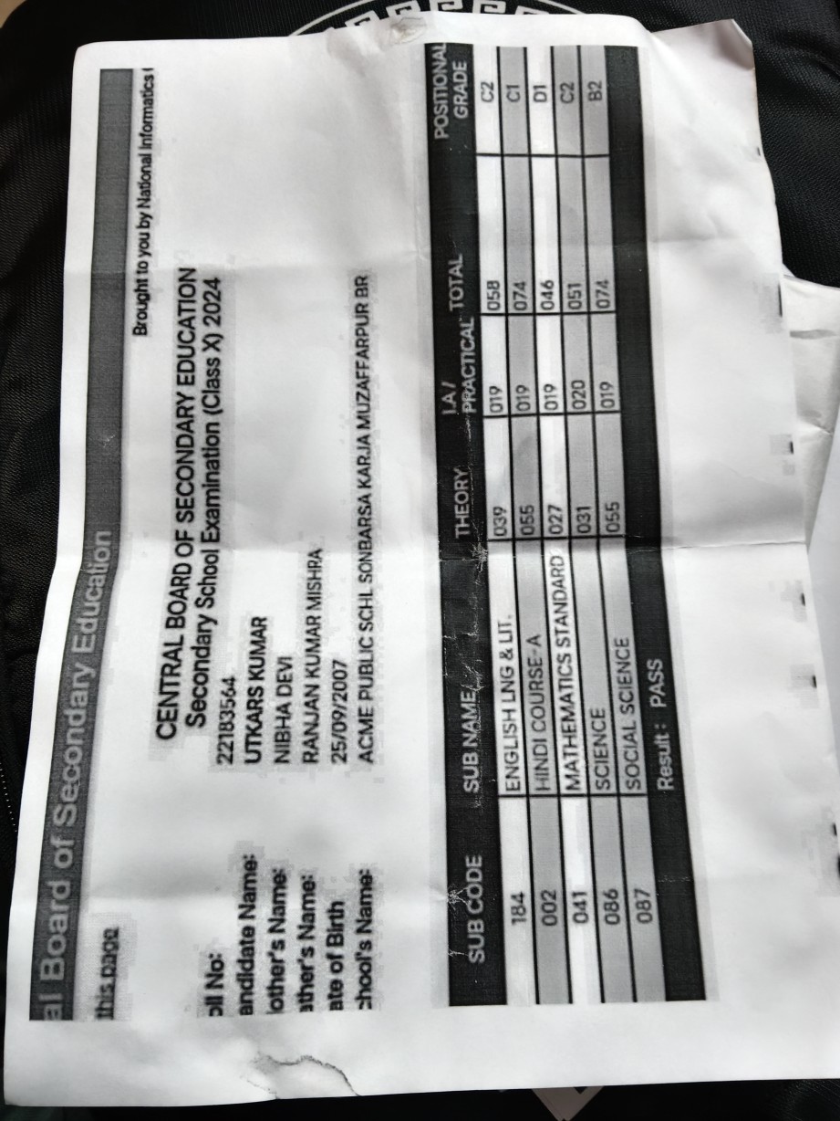 | Exam | Full Marks | Pass Marks | Marks Obtained |
