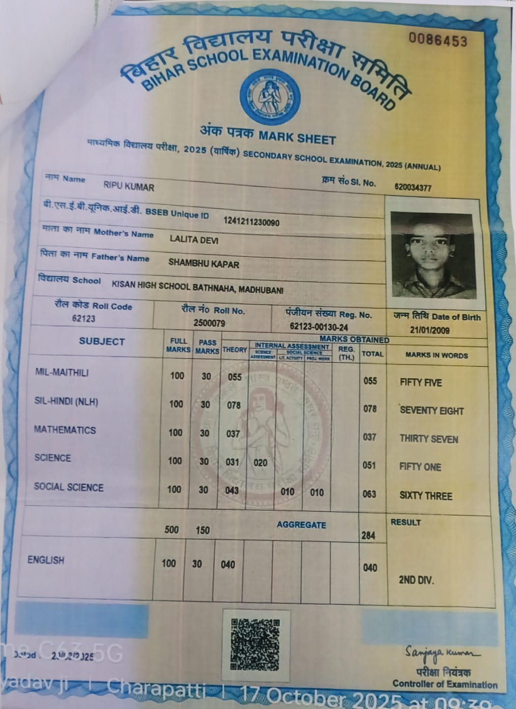 | Exam | Full Marks | Pass Marks | Marks Obtained |