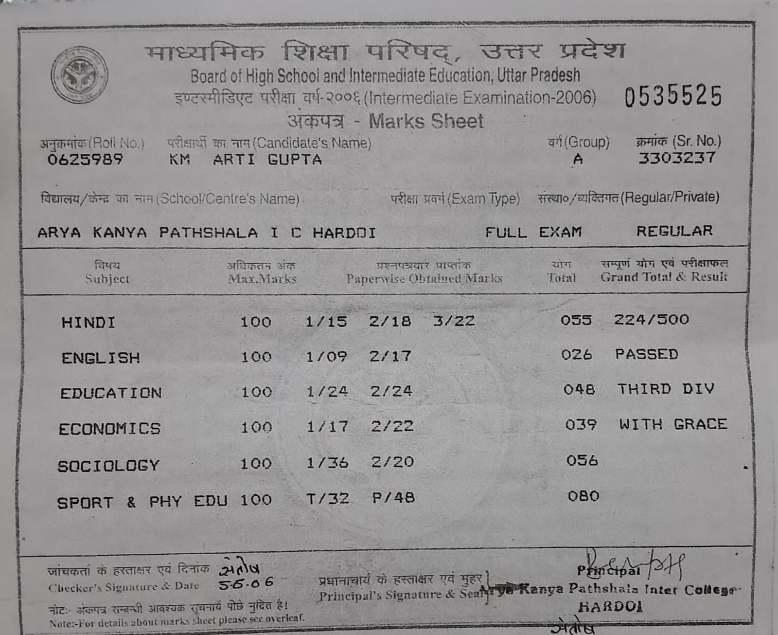 | Exam | Full Marks | Pass Marks | Marks Obtained |