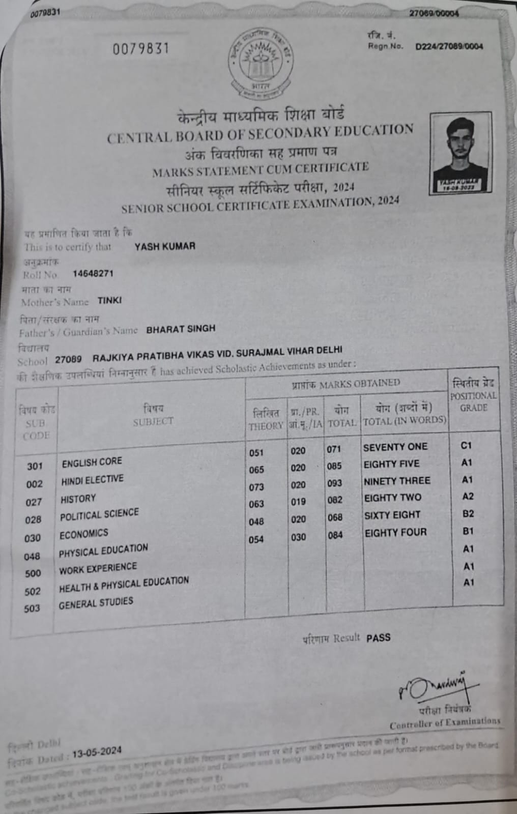 | Exam | Full Marks | Pass Marks | Marks Obtained |