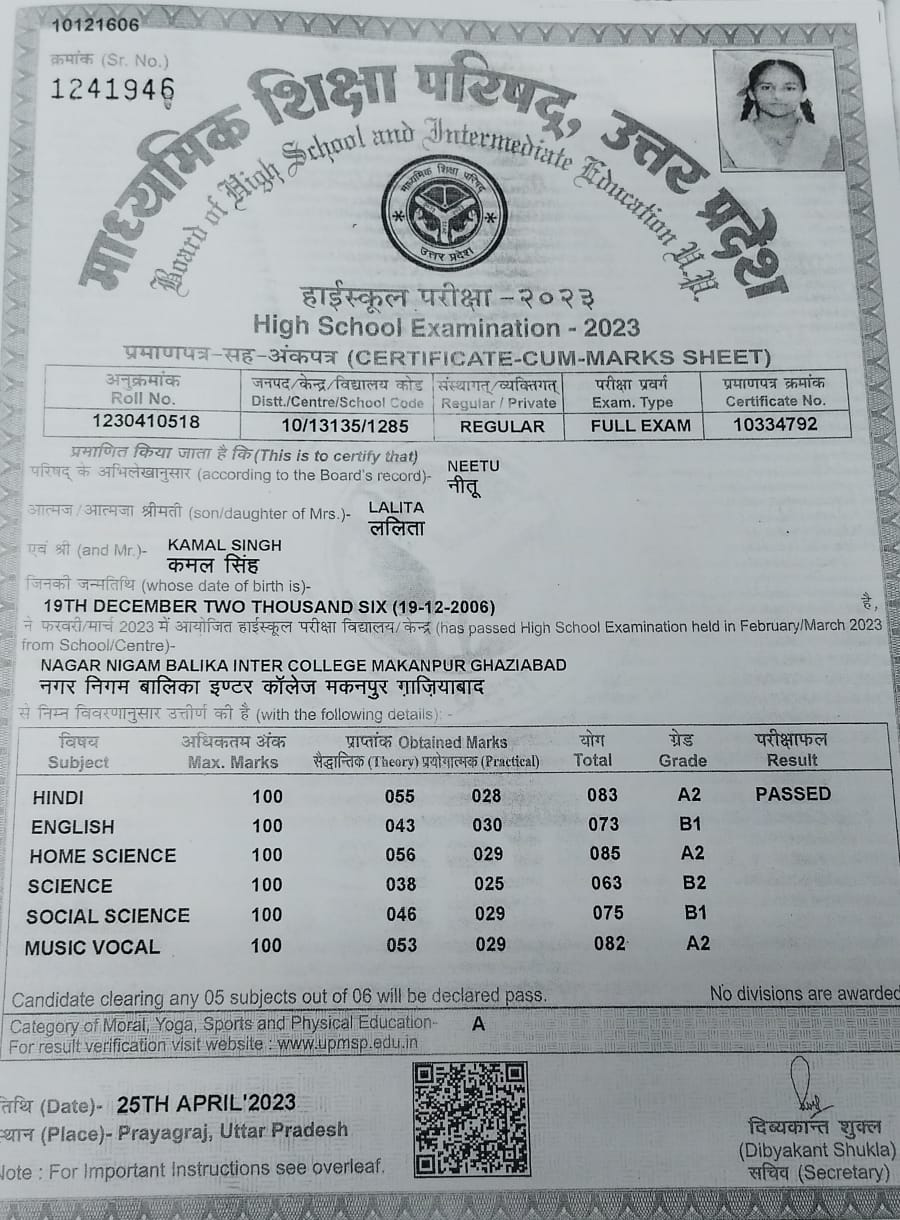 | Exam | Full Marks | Pass Marks | Marks Obtained |