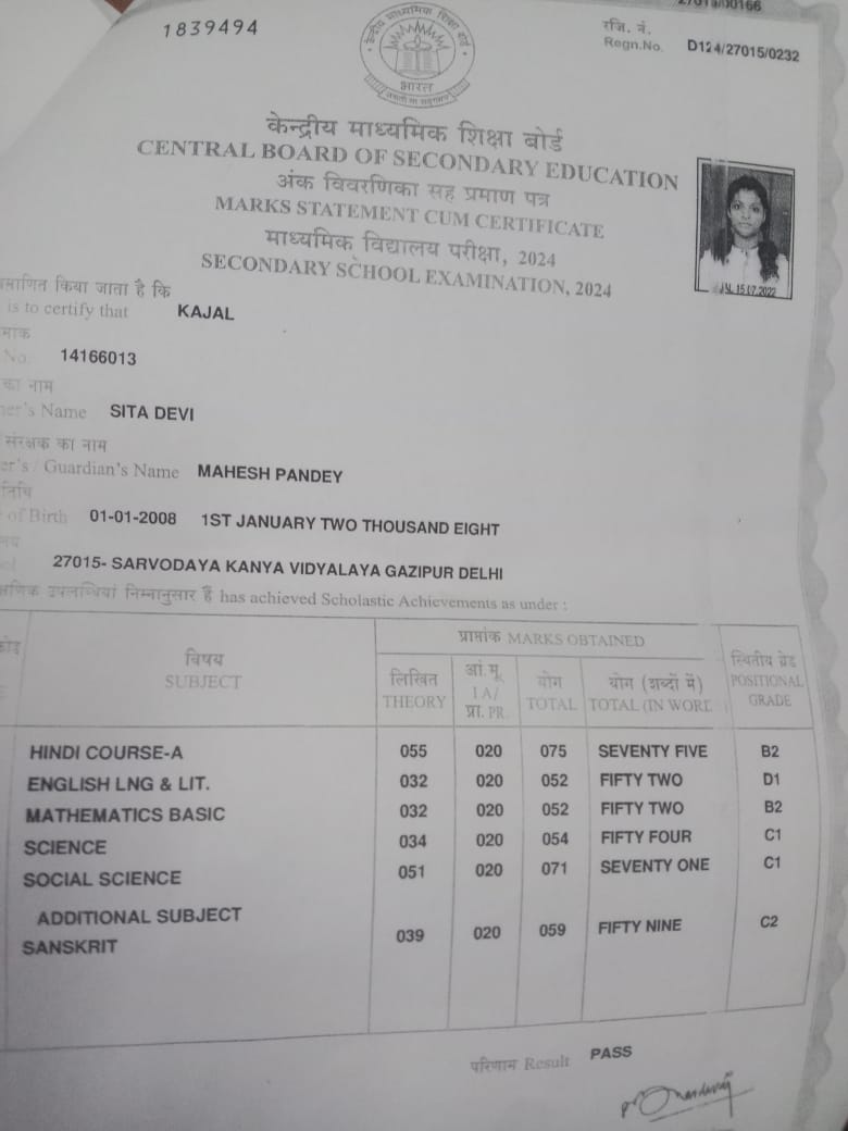 | Exam | Full Marks | Pass Marks | Marks Obtained |