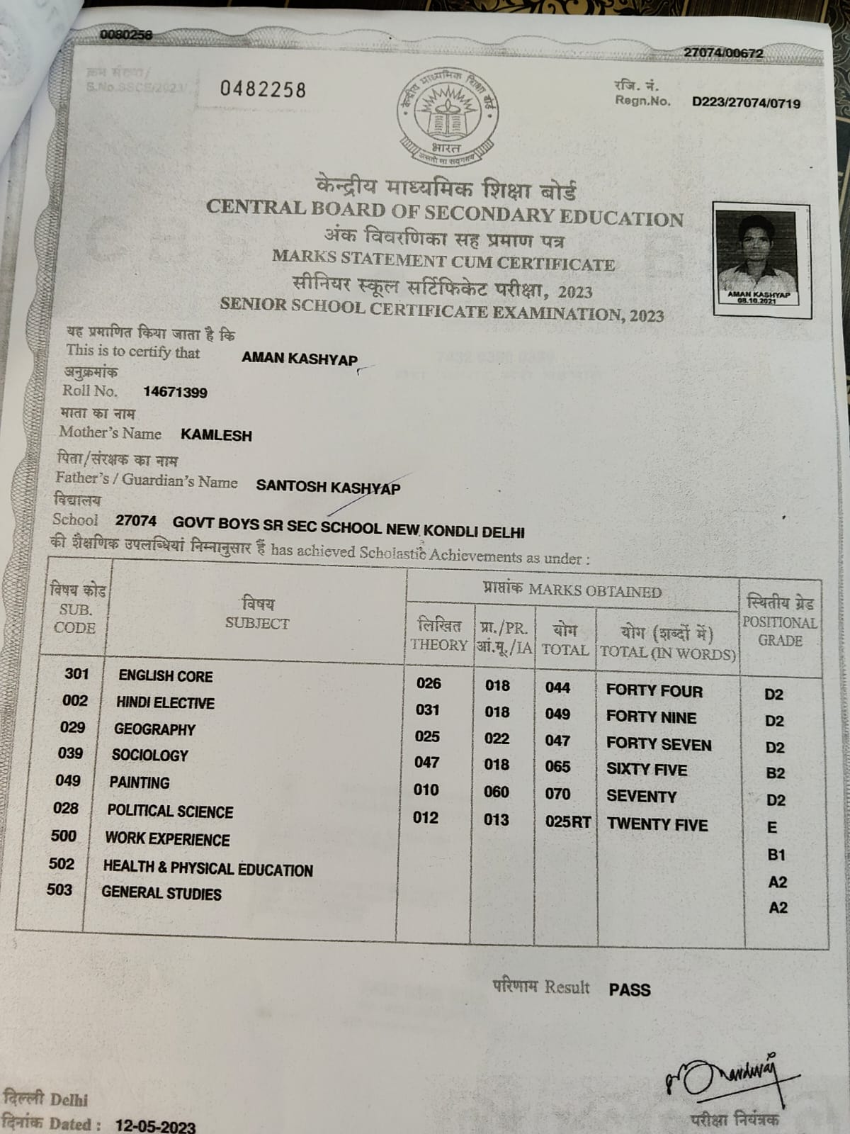 | Exam | Full Marks | Pass Marks | Marks Obtained |