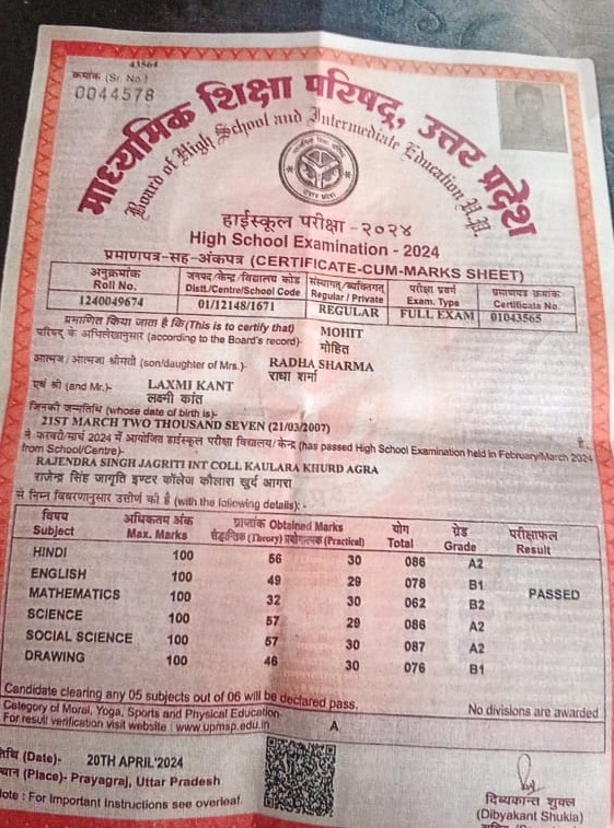 | Exam | Full Marks | Pass Marks | Marks Obtained |