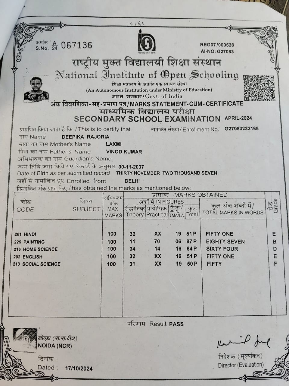 | Exam | Full Marks | Pass Marks | Marks Obtained |