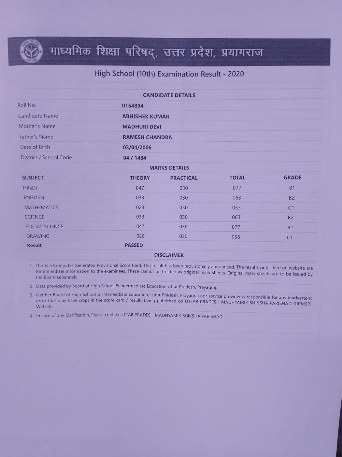 | Exam | Full Marks | Pass Marks | Marks Obtained |