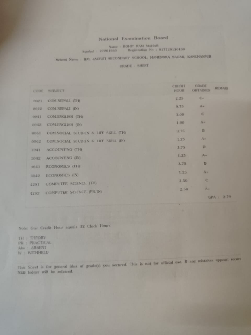| Exam | Full Marks | Pass Marks | Marks Obtained |