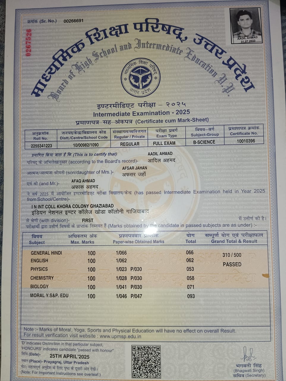 | Exam | Full Marks | Pass Marks | Marks Obtained |