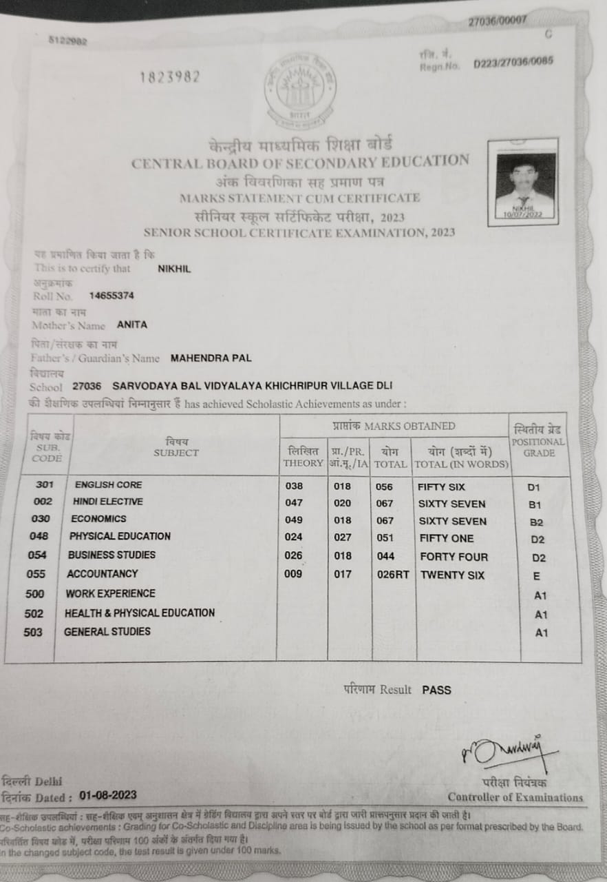 | Exam | Full Marks | Pass Marks | Marks Obtained |