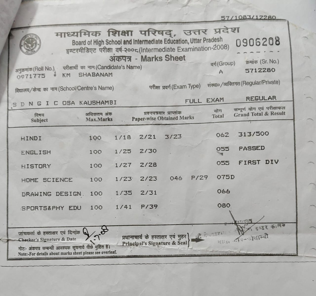 | Exam | Full Marks | Pass Marks | Marks Obtained |