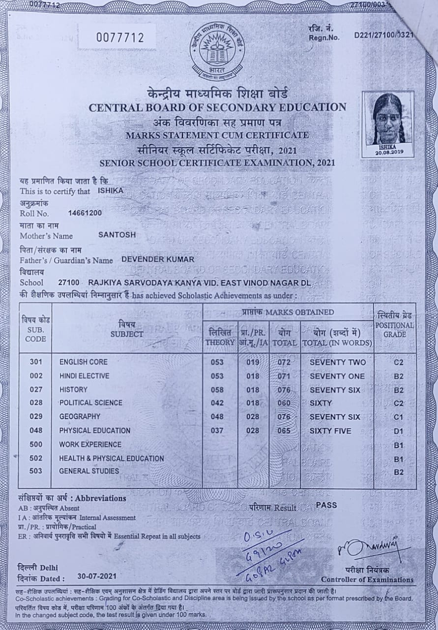 | Exam | Full Marks | Pass Marks | Marks Obtained |